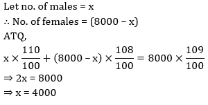 Q16. In a town, the population was 8000. In one year, male population increased by 10% and female population increased by 8% but the total population increased by 9%. Initially the number of males in the town was: