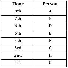 There are eight persons – A, B, C, D, E, F, G and H . They all lives in the eight-storey building in which the ground floor is numbered one and the topmost floor is numbered eight.