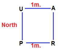 There are AB axis in such a way that A is in north and B is in south direction. There is XY axis in such a way that X is in west direction and Y is in east direction. AB axis and XY axis intersect at a point Q in such a way that AQ is 15m, QB is 14m, QX is 12m, QY is 13 m.