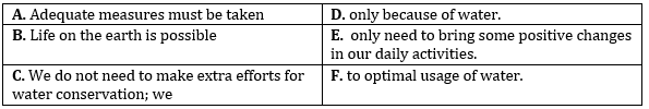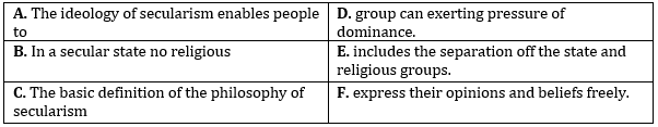 'A-F', 'B-D' and 'C-E' are the correct combinations here and make meaningful sentences