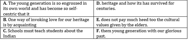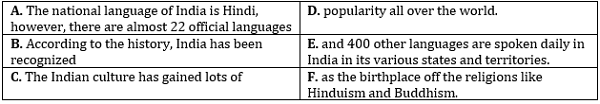 Directions (1-15): In the following questions two columns are given containing three sentences/phrases each. In first column, sentences/phrases are A, B and C and in the second column the sentences/phrases are D, E and F. A sentence/phrase from the first column may or may not connect with another sentence/phrase from the second column to make a grammatically and contextually correct sentence. Each question has five options, four of which display the sequence(s) in which the sentences/phrases can be joined to form a grammatically and contextually correct sentence. If none of the options given forms a correct sentence after combination or none of them connects, mark (e), i.e. “None of the above” as your answer.