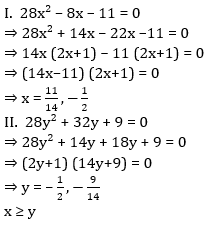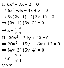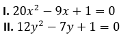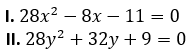 Direction (1 – 5): In each of these equations, two equations (I) and (II) are given. You have to solve both the equations and give answer among the following options.