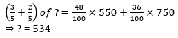 Q15. 3/5 of? = 48% of 550 + 36% of 750 – 40% of?