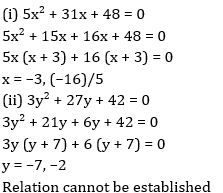 Directions (11-15): In each question two equations numbered (i) and (ii) are given. You have to solve both the equations and give answer