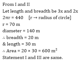 II. Circumference of a circle is 440 m and breadth of rectangle is 1/7 th of diameter of circle.