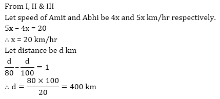 III. Difference between speed of Amit and Abhi is 20 km/hr.