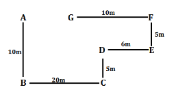 Point A is @10m of point B. Point E is &6m of point D. Point G is $10m of point F. Point C is &20m of point B. Point E is #5m of point F. Point D is @5m of point C.