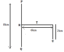 There are six buildings in a colony i.e. P, Q, R, S, T, U. Building P is 8km north of building Q. Building R is exactly between P & Q. Building S is 6km east of building R and building T is exactly between R & S. Building U is 2km south of building S.