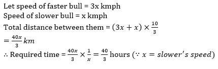 Q6. Two bull started simultaneously towards each other and meet each other 3 hr 20 min later. The ratio of speed of faster bull to that of slower bull is 3 : 1. How much time will it take the slower bull to cover the whole distance?