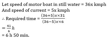 Q9. The ratio of speeds of a motorboat to that of the current of water is 36 : 5. The motorboat goes along with the current in 5 hours 10 min. Find the time taken by motorboat to come back.