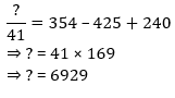 Q11. 17 × 25 – 240 +? ÷ 41 = 354