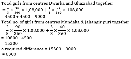 Q8. What is the difference between total no. of girls from Centers Dwarka and Ghaziabad together and total no. of girls from centers Mundaka and Jahangir puri together?