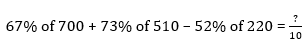 Q11. 39% of 450 + 51% of 340 – 40% of 255 =?