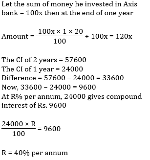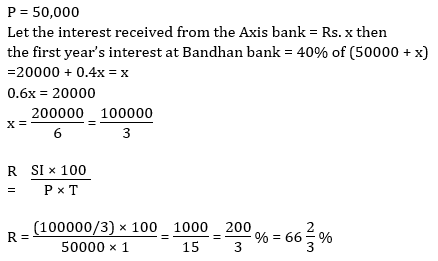 Q5. If the first year’s compound interest at Bandhan bank was same as the simple interest received from the Axis bank at the end of 1 year and the rate of interest for the Bandhan bank remained constant, then what should be the rate of interest for Axis bank?