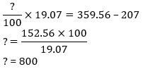 Q7. 46% of 450 +? % of 19.07 = 359.56