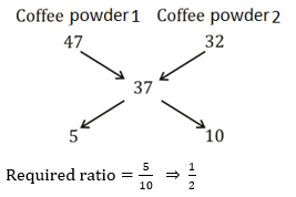 Q11. In what ratio should two qualities of coffee powder having the rates of Rs. 47 per kg and Rs. 32 per kg be mixed in order to get a mixture that would have a rate of Rs. 37 per kg ?