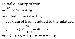 Q1. An alloy of iron and nickil weight 50g. It contains 80% iron. How much iron should be added to the alloy so that percentage of iron is increased to 90%?