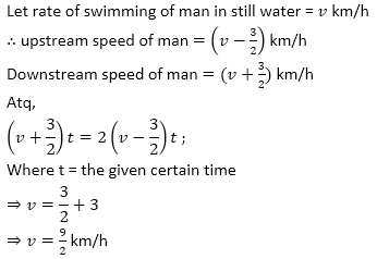 Q9. A man swimming in a stream which flows 3/2 km/h, finds that in a given time he can swim twice with the stream as he can swim against it. Find the speed of man in still water.