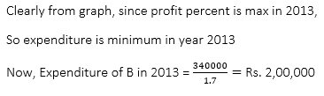 Q14. If the income of B remains same throughout the years i.eRs. 3.4 lakhs then in which year his expenditure was minimum and what was the expenditure in that year?