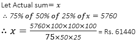 Q9. There is a certain amount from which A takes 25% then B takes 50% of remaining amount, then C takes 75% of the remaining amount. Now if the amount left is 5,760 then what is the actual sum?