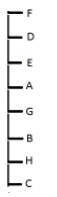There are three boxes placed between D and B. Two boxes placed between A and H. Box H kept just below box B. There are two boxes between the box B and E. Two boxes are placed between the box C and box G. Box C placed at the bottom. Box F does not place immediately below the box A.