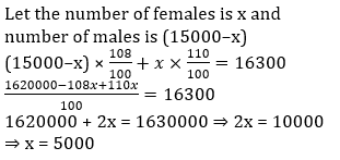 Q12. The population of a town is 15000. If the number of males increases by 8% and that of females by 10%, then the population would increase to 16300. Find the number of females in the town.
