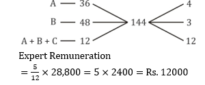 Q13. Stanic and Paul take a piece of work for Rs. 28,800. One alone could do it in 36 days, the other in 48 days. With the assistance of an expert, they finish it in 12 days. How much remuneration the expert should get?