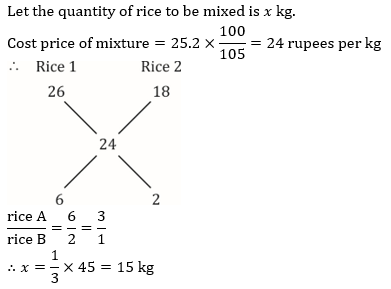 Q15. In what ratio three types of rice whose cost prices are Rs. 5.20, Rs. 5.70 & Rs. 6.40 per kg respectively should be mixed so that of selling this mixture at the rate of Rs. 6.72 per kg there is a profit of 20%?