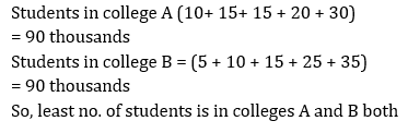 Directions (11-15): The following bar graph shows the total no. of students (in thousands) of three different colleges over five different years.