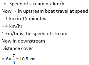Q11. A boat which has a speed of 5 km/hr in still water cover 1km upstream path in 15 minutes. How much distance it could cover in 1 hour 45 minutes in downstream: