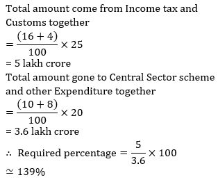 Q15. Total amount come from Income tax and Non-tax Revenue together is how much percent more than the total amount gone to centrally sponsored schemes and Defence sector together?
