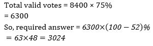 Q7. In an election between two candidates, one got 52% of total valid votes. 25% of the total votes were invalid. The total number of votes were 8400. How many valid votes did the other person get ?