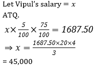 Q6. Vipul decided to donate 5% of his salary. On the day of donation he changed his mind and donated Rs. 1687.50 which was 75% of what he had decided earlier. How much is Vipul’s salary ?