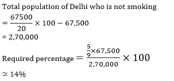 Q16. If 20% population of Delhi is smoker then total no. of male smokers in Delhi is approximately what percent of total population of Delhi who is not smoker?