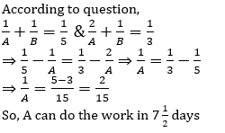 Q11. Two workers A and B working together completed a job in 5 days. If A had worked twice as efficiently as he actually did, the work would have been completed in 3 days. To complete the job alone, A would require