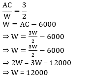 Q12. The prices of a room air conditioner and an automatic washing machine are in the ratio of 3 : 2. What would be the price of the washing machine if it costs Rs.6000 less than the air conditioner?