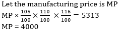 Q14. The manufacturer of an article makes a profit of 5%, the wholesale dealer makes a profit of 10%, and the retailer makes a profit of 15%. Find the manufacturing price of the article if the retailer sold it for Rs. 5313.
