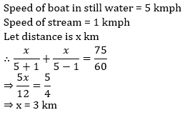 Q13. A man can row at 5 km/hr in still water. If the river is running at 1 km/hr it takes him 75 minutes to row to a place and back. How far is the place?