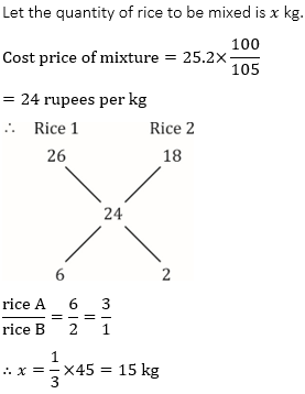 Q14. How much quantity of rice of the price 18 rupees per kg should be mixed with 45 kg of rice having price 26 rupees per kg so that after selling mixture at 25.2 rupees per kg there is a profit of 5%?