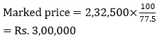 Q12. A car dealer gives a discount of 22.5% on marked price of cars. Ashok purchases a car in Rs. 2,32,500. What is the marked price of car?