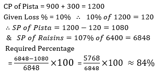 Q15.If the loss on Pista is 10% then its selling price is what percentage less than the selling price of Raisins?