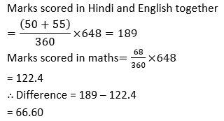Pie-chart shows the marks obtained by a student in different subjects in an examination. (In degree)
