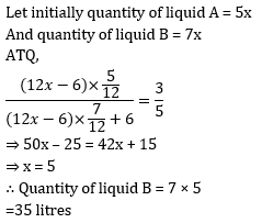 Q11. A bucket contains a mixture of two liquids A and B in the proportion 5: 7 . If 6 litres of the mixture is replaced by 6 litres of liquid B, then the ratio of the two liquids becomes 3 : 5. How much of the liquid B was there in the Bucket initially?