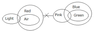 Some light is green. No green is red. Some red is blue. All blue is air. No pink is air.