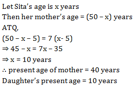 Q12. The sum of the ages of a Sita’s mother and her daughter is 50 years. Also 5 years ago, the mother’s age was 7 times the age of the daughter. What are the present ages of the mother and the daughter?