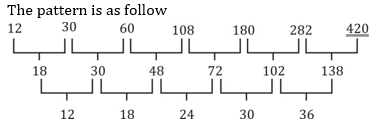 Q15. 12, 30, 60, 108, 180, 282, ?