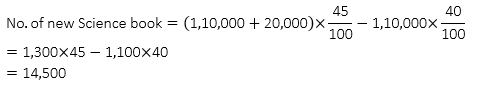 Q13. In a public library, there are 110,000 books, 40% of which are science books. It was decided to add 20,000 new books to the library. How many of the new books should be science books in order to bring the percentage of science books in the library up to 45%?