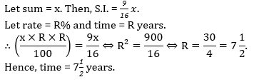 Q14. Simple interest on a certain amount is 9/16 of the principal. If the numbers representing the rate of interest in percent and time in years be equal, then time, for which the principal is lent out, is: