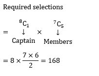 Q13. A school team has 8 volleyball players. A five member team and a captain will be selected out of these eight players. How many different selections can be made?
