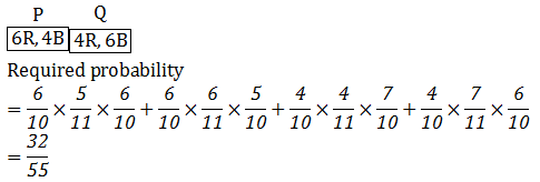 Q14. Bag P contains six red and four black balls and Bag Q has four red and six black balls. One ball is drawn at random from Bag P and placed in Bag Q. Then one ball is transferred at random from Bag Q to Bag P. If one ball is now drawn at random from Bag P, find the probability that it is red.